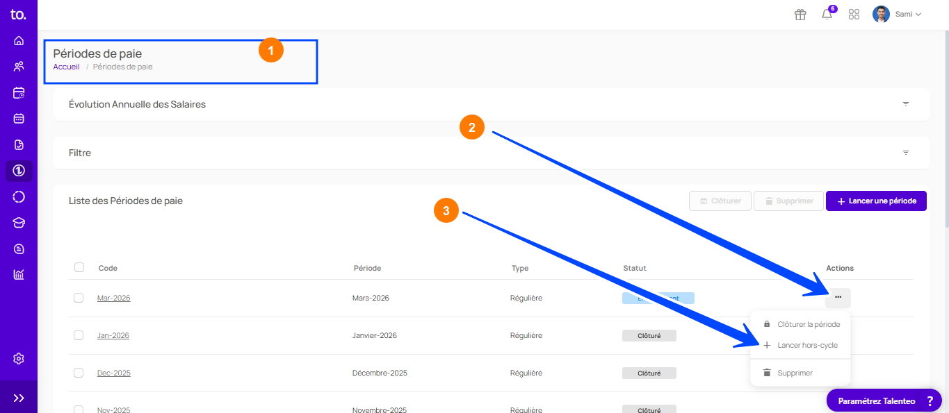 Lancez la période exactement comme une période normale, en suivant les mêmes étapes que pour une paie standard.