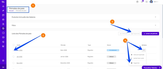 Étape 9 : Supprimer ou clôturer une période de paie