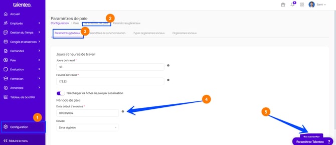 Vous devez fixer une date de début pour l’exercice, ce qui permet d’alimenter correctement l’instance de l’historique paie